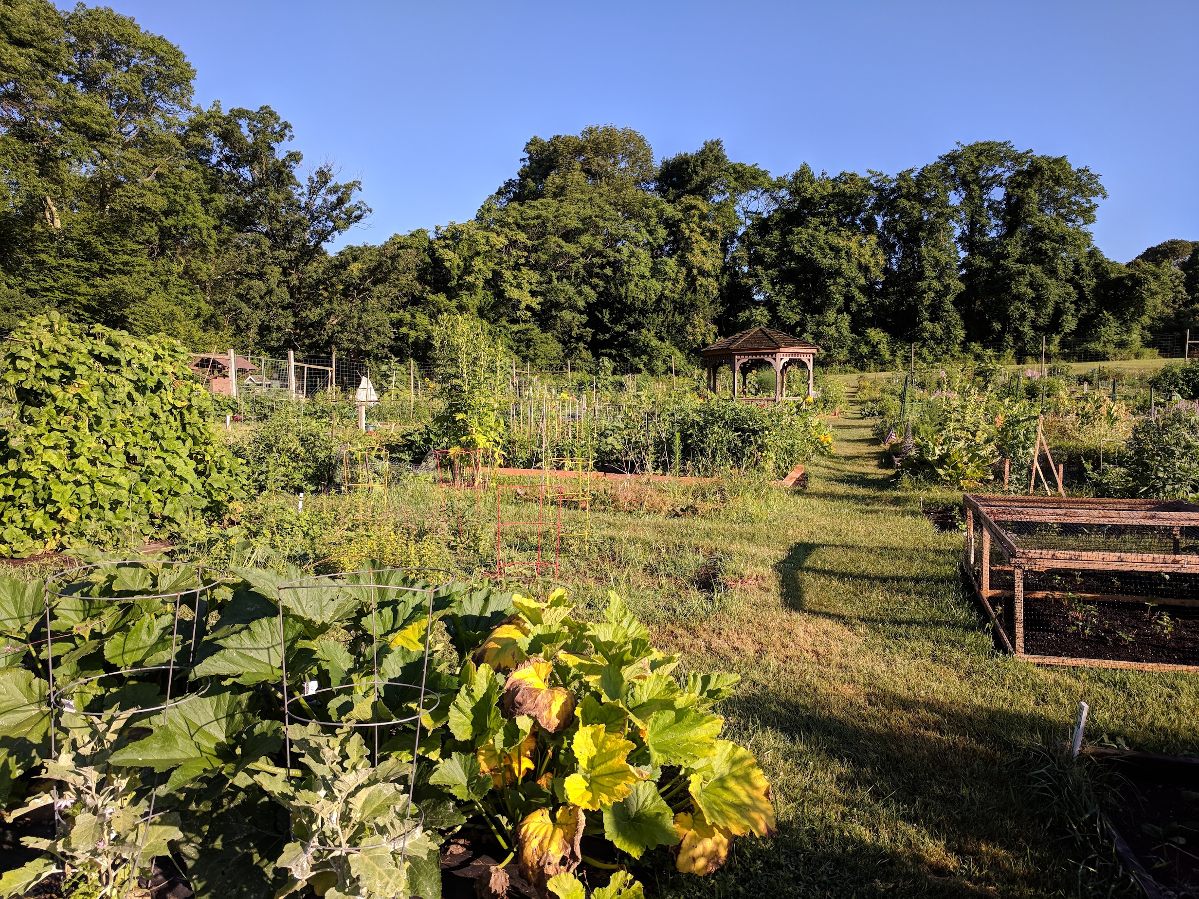 The maintenance of the garden is based on each gardener putting in time to take care of the garden. The by-laws require each gardener to keep the garden in good repair and looking and functioning at its best. All are encouraged to work their plots and keep them as weed-free as possible. While a constant chore, weeding will help produce higher veggie yields and a more attractive looking garden. For those whose bounty exceeds what they are able to use, donation bins are provided by the gate to benefit area food pantries.